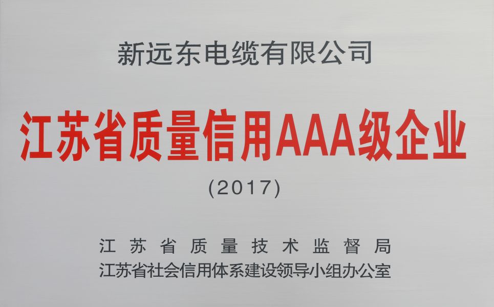 • 江苏省质量信用AAA级企业